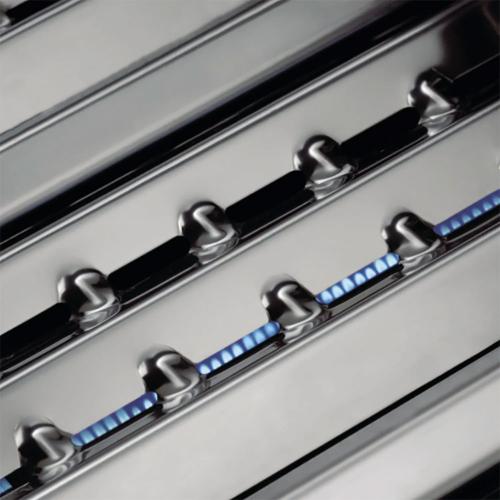 • Four(4) patented Dual-Tube burners are made from high-quality, heavy-duty stainless steel. These large diameter, tube-in-tube side ported burners provide even heat distribution with two rows of flame per burner.