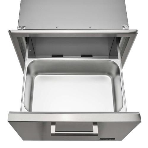 The Coyote 26 inch Pull-Out Ice Chest is a premium addition to any outdoor kitchen, offering a fully insulated, easy-access storage solution for beverages and ice. Featuring a removable condiment tray, full-extension drawer slides, and commercial-quality rails, this unit ensures effortless operation. The newly designed handle and beveled trim enhance its sleek, built-in appearance, making it a must-have for entertaining outdoors.