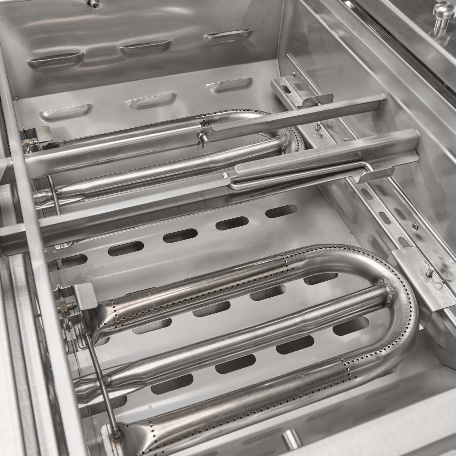 The Coyote 50 inch Combo built-in natural gas grill delivers a dual-zone cooking experience, featuring both a gas grill with Infinity burners and an integrated flat top with U-Burners. This combination allows for traditional grilling and high-heat searing, as well as flat-top cooking for ultimate versatility. The double walled hood provides excellent insulation, helping to retain heat more effectively. The integrated wind guard ensures consistent heat and performance, so you can keep grilling even in windy conditions. The newly updated design also includes sleek knob and bezel styling, an improved end cap, and a sturdy handle for a refined look. Unique volcanic stone briquettes work in tandem with the two powerful Infinity burners to provide excellent heat retention & consistent heat across the stainless-steel grates. Cook up some juicy burgers on the traditional grill, while cooking delicious toppings like vegetables or bacon on the flat-top. Experience cooking versatility with this combo grill & create the ultimate outdoor cooking experience in your backyard.