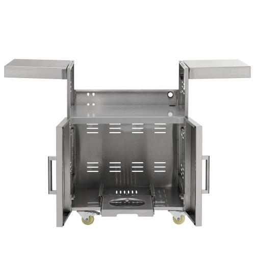 The Coyote 30 inch Grill Cart is built to complement 30 inch C or SL-Series grills, offering a premium storage and mobility solution for outdoor cooking. Constructed from durable 304 stainless steel, it features self-closing doors and drawers for secure storage. The industrial-quality casters ensure effortless movement and stability, while the fold-down storage shelves provide extra workspace when needed. A slide-out shelf simplifies propane tank storage, making this grill cart both functional and stylish.