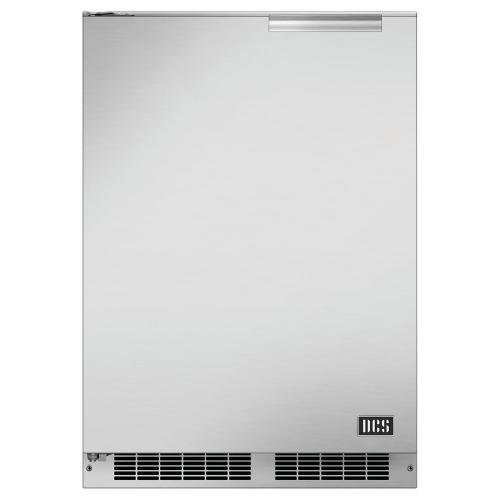 The DCS 24-Inch left-hinged outdoor refrigerator is the perfect addition to your outdoor kitchen area. With 5.3 cubic feet of storage, it is capable of holding up to 154 12-oz cans. The rapid cool-down technology and precise temperature stability will help keep your favorite beverages or snacks cool. This compact refrigerator is constructed of 304 stainless steel and is UL-approved, making it ideal for outdoor use. It includes an automatic interior light and a temperature range of 34 to 60 degrees. An audible alarm indicates if the interior temperature falls outside of the proper storage parameters or if the door is left ajar. This compact refrigerator can be used in either freestanding or built-in applications.