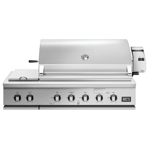 DCS grills are engineered for people who want to cook just like a professional chef in their own home. This 48-inch propane gas built-in grill features three 25,000 BTU U-shaped stainless steel burners that push an impressive total of 75,000 BTUs of cooking power. Each burner features a heat shield that directs heat upwards, maximizing grilling efficiency. DCS grills offer Ceramic Radiant Technology, which is a layer of ceramic rods placed between the burners and cooking grate. The rods provide intense, yet even heat, ensuring the temperature is consistent across the entire grilling surface. This innovative feature allows you to sear meat to perfection anywhere on the cooking grid. This grill boasts a 630 square inch main cooking surface with durable, double-sided cast stainless steel cooking grids. One side has a gentle curve for delicate items such as fish and vegetables, while the other side accommodates steaks and other cuts of meat, capturing grease while creating perfect sear lines. DCS BH1 grills feature a wider range of cooking temperatures with valves that can be turned down to as low as 300 degrees at the grilling surface. The patented Grease Management system effectively channels grease and oil away from the flame while grilling, which greatly reduces flare-ups. The 14,000 BTU infrared rear burner functions perfectly for slow-roasting, and the included rotisserie kit can accommodate up to 50 lbs! The smoker tray is welded closed so you can add your favorite wine or beer into the tray. A dedicated 3,500 BTU smoker burner allows the wood chips to slowly smolder for more layers of flavor. The removable warming rack features a spacious 241 square inch, stainless steel warming area. The temperature gauge allows you to control cooking temperatures. Cook something on the side with the integrated side burner unit which features two burners with 34,000 total BTUs of cooking power. The push and turn 9-volt battery ignition operates with the ease of an indoor range, and the 40-watt halogen Smart Beam BBQ grill light adds visibility while you grill. Every DCS grills is handcrafted and constructed entirely of heavy gauge, type 304 stainless steel.