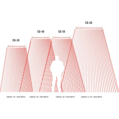 • Powerful dual-element CD-Series fixtures provide more concentrated heat for larger scale applications with mounting heights of 8-14 feet.
