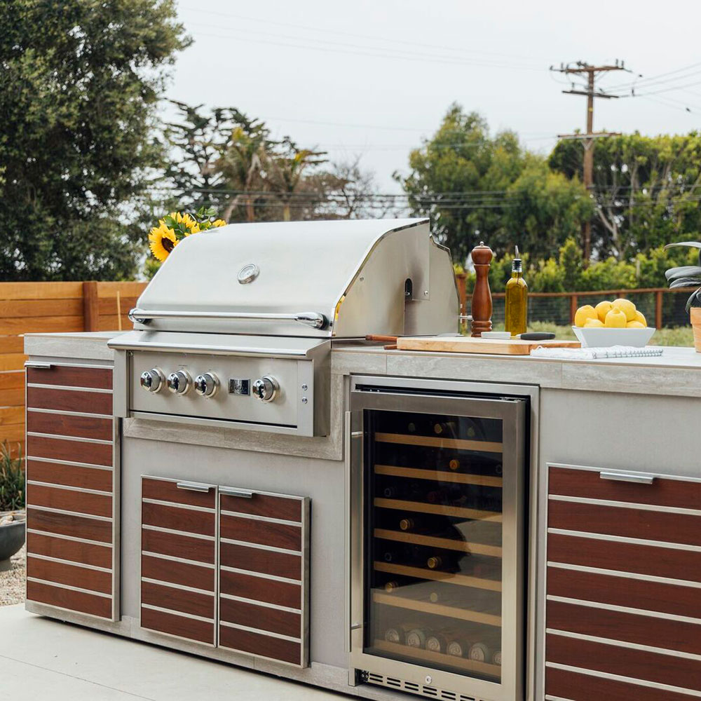 The all-new Madera Collection by Summerset Grills features outdoor kitchen storage that combines the modern elegance of high-end interior design with the rustic appeal of a natural, outdoor environment. Offering a chic new take on the traditional backyard aesthetic, the weather-resistant dry storage features high-grade North American 304-grade stainless steel and sustainably sourced teak or IPE wood options. Double-lined construction provides extra insulation and resilience against harsh environments, and weather-resistant seals keep moisture and critters out. Madera by Summerset Grills functional design extends to soft closing hinges, smooth gliding tracks, and magnetic latches, all backed by the Summerset Lifetime Warranty. The patent-pending design allows you to remove your wood slats for staining, oiling, cleaning, and further customization. The 100 perfect American Made Madera by Summerset Grills series is sure to bring any outdoor environment to life. The Madera SSMDD-30-IP features a half-length design, fully-opened interior to have direct access to the interior of your outdoor kitchen.