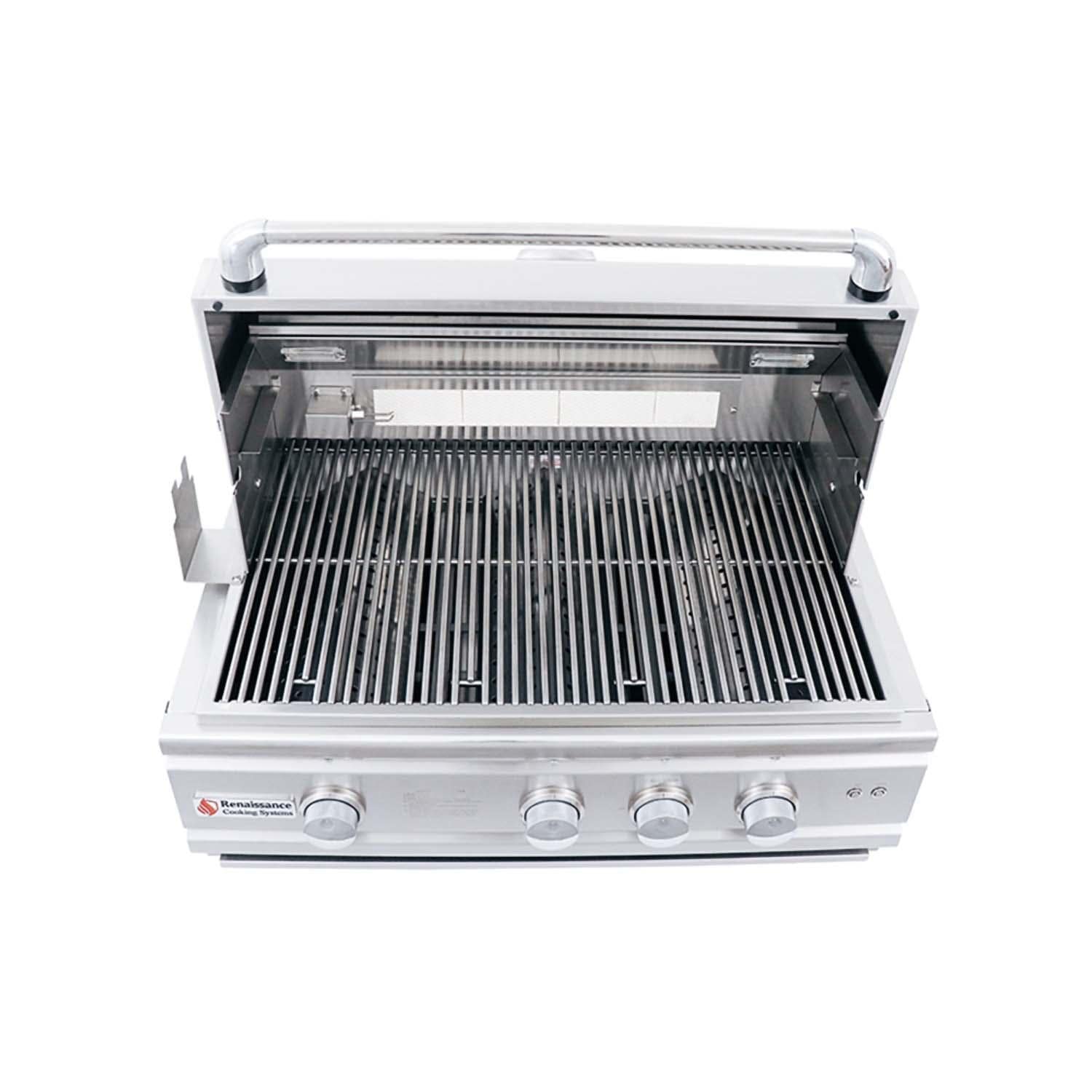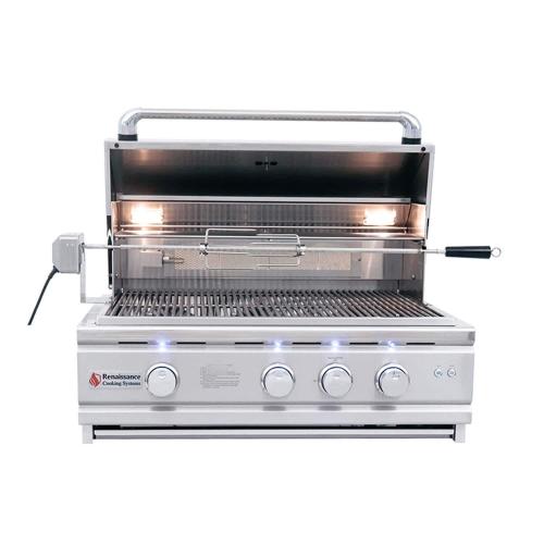 The RCS Cutlass Pro 30 Inch Built-In Natural Gas is designed for the weekend cook as well as the professional chef. With cast stainless steel burners, solid stainless steel rod cooking grids and warming rack, plus the 304 stainless steel housing, these grills will provide you with many years of great tasting food. Other quality features include the rear infrared rotisserie burner with motor, spit rod with two 4 prong forks, heat zone separators, interior halogen lights, LED illuminated control knobs and a full width slide out drip tray. Also included is a sure strike ignition system, which is the most reliable in the industry. Optional infrared searing burner upgrade is available! These grills are gorgeously sophisticated, yet very simple to operate.