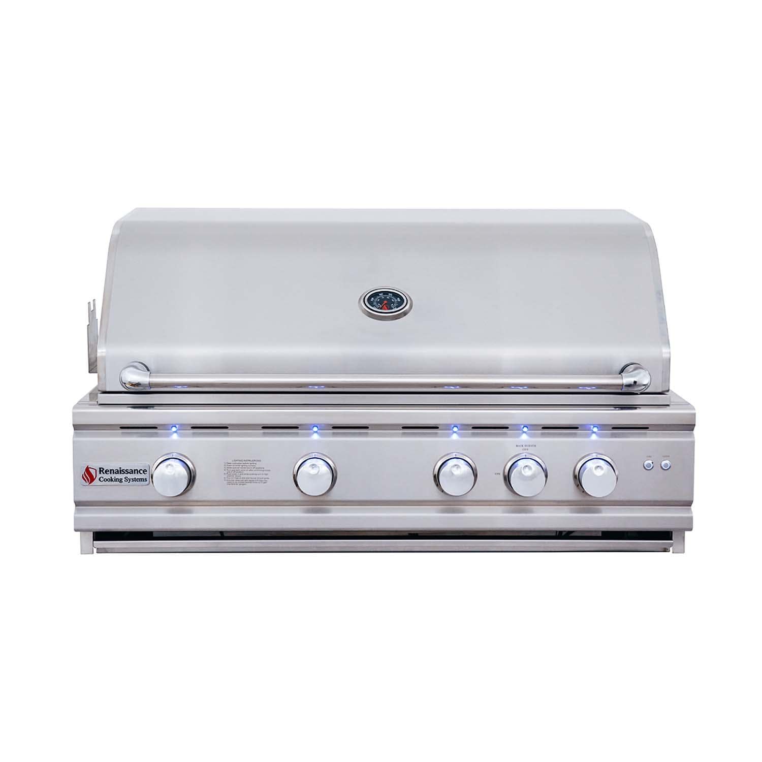 The RCS Cutlass Pro 38 Inch Built-In Natural Gas Grill is designed for the weekend cook as well as the professional chef. With cast stainless steel burners, solid stainless steel rod cooking grids and warming rack, plus the 304 stainless steel housing, these grills will provide you with many years of great tasting food. Other quality features include the rear infrared rotisserie burner with motor, spit rod with two 4 prong forks, heat zone separators, interior halogen lights, LED illuminated control knobs and a full width slide out drip tray. Also included is a sure strike ignition system, which is the most reliable in the industry. Optional infrared searing burner upgrade is available! These grills are gorgeously sophisticated, yet very simple to operate.