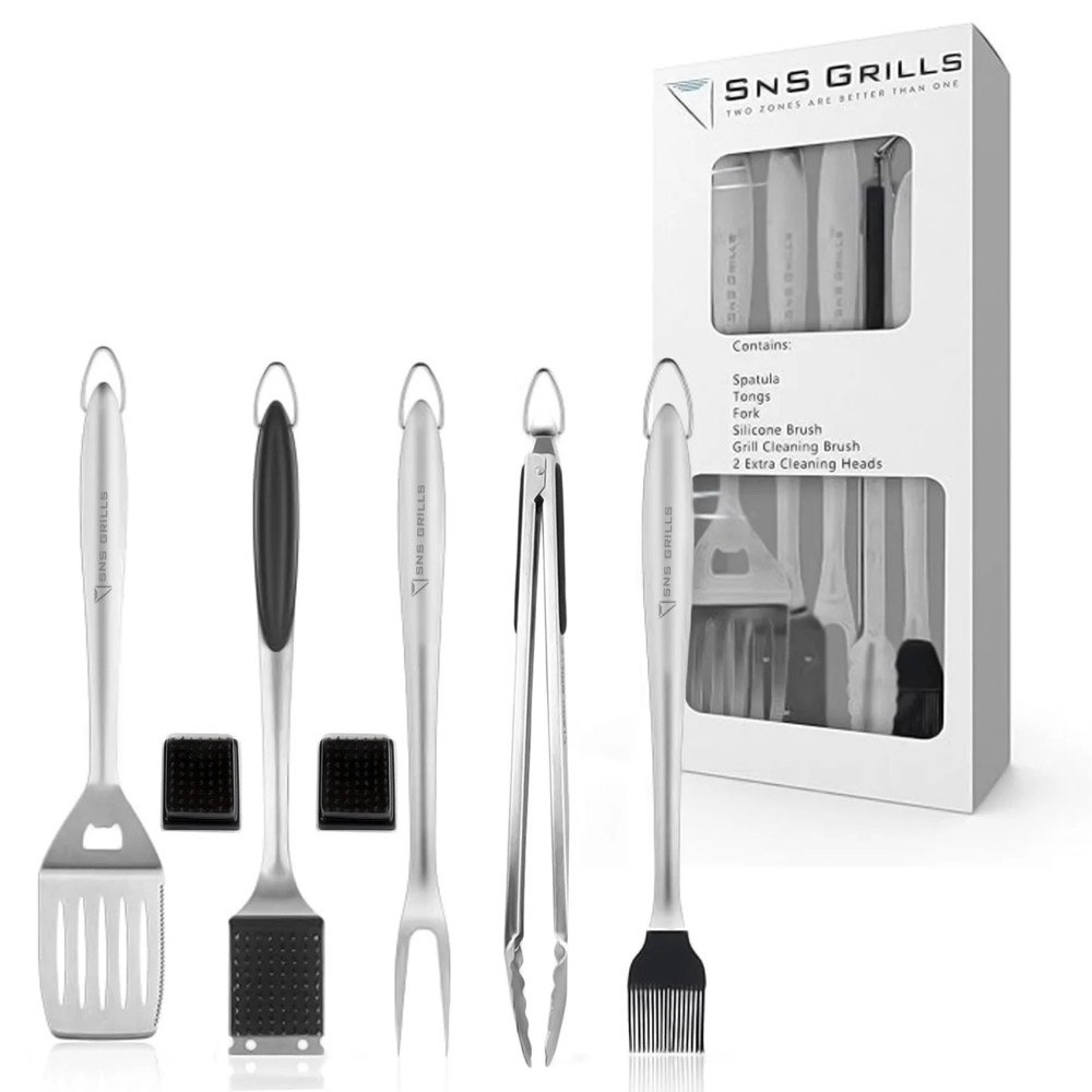SNS Grills 7-Piece Stainless Steel Grilling Tool Set with Rubber Grips