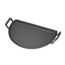 Turn Your 18-Inch Grill into a Griddle! This 18-Inch carbon steel Plancha (griddle) from SnS Grills provides a smooth, flat top cooking surface with excellent thermal conductivity, which is perfect for smash burgers, Philly cheesesteaks, Hibachi-style meals, breakfast, and much more. Once seasoned, the natural non-stick cooking surface makes this Plancha (griddle) easy to cook with and also very easy to clean and maintain. 13 lbs of heavy-duty, carbon steel with high thermal mass and heat retention. Quarter-inch thickness provides strength and durability. Guaranteed not to warp! High quality, cooking surface is ideal to ensure the crust stays on the food and not on the steel. The specially designed profile allows the Plancha to be rotated 360 degrees so you can position your food over your preferred heat zones without actually moving the food. The combination of the two cut-outs enables the heavy weight of the Plancha to be handled in and out of the grill while wearing gloves. Do not handle when hot. Large handles provide excellent airflow and allow the ideal placement of a drip tray underneath. The flat edge of the handles makes it convenient for scraping a spatula while cooking. Sits close to the coals to give excellent fuel efficiency. Works well with the Slow 'N Sear Charcoal Basket for two distinct cooking zones. Specifically designed for Slow 'N Sear Travel Kettle or other 18-inch round Kettle style grills (including Weber).
