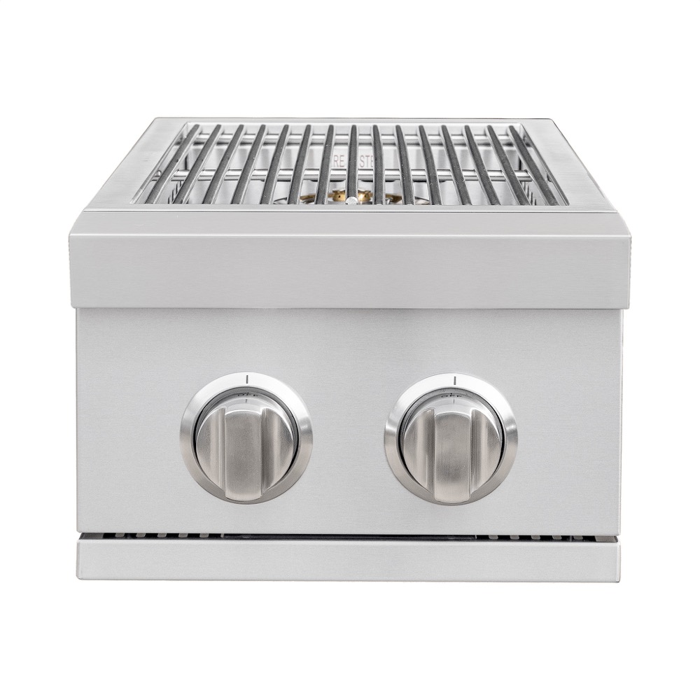 An exceptional outdoor kitchen is not confined to the grill, it is about having everything you need at your fingertips. The commercial-grade Double Side Burner brings versatility to your space, allowing you to simmer, saute, and sear effortlessly while the main event stays on the fire and conversations unfold. With two 12,000 BTU burners, and a generous 196-square-inch cooking surface, this burner offers the space and stability needed to handle anything from cast iron skillets to saucepans. Crafted from #443 stainless steel and backed by the Gold Standard Warranty, it is built for life outdoors, resilient, refined, and always ready. Whether it is an evening for two or a weekend cookout, the Double Side Burner helps you cook with confidence and serve with style.