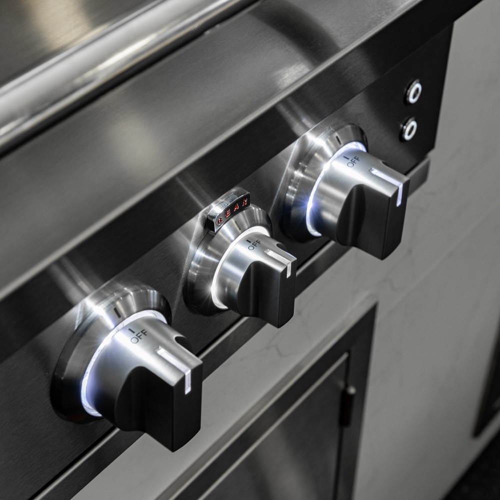 The Sizzler Pro (Sizzler Professional Series) combines features, quality construction, and affordability all into a revolutionary gas grill. The Summerset Grills Sizzler Pro Series (SZRPRO40L) 40-Inch Freestanding Propane Gas Grill is a premium gas grill at an unbeatable price. Constructed in all commercial-grade stainless steel and designed with careful precision to ensure optimal airflow and even heating, the Summerset Grills SZRPRO40L gives its higher-priced competitors a run for their money in both durability and grilling performance. The Summerset Sizzler Pro grill will impress the most discriminating of grillers. The Summerset Grills Sizzler Pro Series 40-inch propane gas BBQ grill (SZRPRO40L) features five(5) cast stainless steel burners, for 70,000 BTUs of total cooking power. The 40-Inch Summerset Sizzler Pro grill offers a 15,000 BTU ceramic rear rotisserie burner that expands cooking options, allowing you to slow roast poultry and other meats (rotisserie kit is optional). Have full cooking control of your Summerset SZRPRO40 with heat zone separators, thick, heavy-duty pieces of stainless are placed in between each burner to allow for proper cooking temperature and create 'zones' in your gas grill. The SZRPRO40L Summerset Grill also features an easy-clean briquette system, which helps reduce flare-ups and ensures the grill has even heating across the grilling surface. Reliable startup every time, with the Piezo ignition system. Backup flash tubes, with cross over tubes between burners, allow for one burner to easily light off the other. Large, easy to turn control knobs with rugged surround make operation simple, above each light, bright LED lights illuminate the knobs for beautiful nighttime aesthetics. A stainless steel warming rack keeps freshly grilled meals ready for eating, and the full drip tray makes cleanup effortless. With 683 square inches of primary and 202 square inches of secondary, this large 985 square inches of the overall cooking surface is perfect for grilling for a large party. The stainless steel grill cart features double access door storage, two(2) fixed side shelves, paper towel holder behind left door, propane tank storage and locking casters.