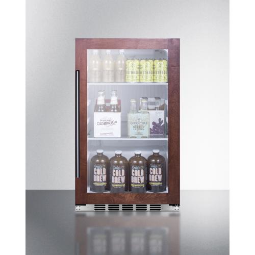 Summit's line of built-in undercounter outdoor appliances includes slim-fitting display beverage centers designed for optimum storage and product presentation. The SPR489OSPNR features a versatile design that meets NSF-7 and UL-471 commercial standards, but is also approved for residential use. Sized with a slim 19 inch width and 17 3/4 inch shallow depth, it features a jet black cabinet with a sealed back for safe installation in the outdoors. The height can be adjusted between 33 7/8 and 34 1/2 inches to best suit your space. The double pane tempered glass door includes a panel-ready trim that lets you create a custom look to match or complement other cabinetry (panel dimensions: 18 3/4 inch W x 31 9/16 inch H at a minimum of 3/4 inches thick). Customers supply their own handle to best match their setting. The space-saving right angle plug and integrated hinge offer added space savings, while the stainless steel kickplate completes the look. Inside, the SPR489OSPNR utilizes an internal fan to ensure the interior is evenly cooled from top to bottom. An automatic defrost system allows for minimal user maintenance, while the white interior and LED lighting allows full visibility of stored items. Three adjustable glass shelves with six positions provide optimal storage capacity inside the 3.1 cu. ft. interior. The dial thermostat, with seven temperature settings, is located in the upper-right corner for easy temperature management. The SPR489OSPNR can be installed indoors or outdoors and is designed for built-in or freestanding use. Additional panel-ready choices are available in 15 inch, 18 inch, and 24 inch wide fits. Browse our full selection to find the perfect fit.