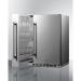 Summit's shallow depth series of built-in undercounter refrigeration includes residential outdoor options with pull-out side compartments for added storage convenience in a modern style. The SPR196OS24 is sized at just 24 inches wide and 17.25 inches deep, with a front-breathing design for built-in installation under counters and a fully finished stainless steel wrapped cabinet to also allow freestanding use. The sealed back ensures safe installation outdoors and protection from the elements. The stainless steel refrigerator door and storage drawer front bring elegance to any setting, with pro-style handles to complete the look. A factory-installed lock offers added security in the refrigeration compartment, while the space-saving right-angle plug and integrated hinge provide added flexibility in unit placement. For added protection against the elements, we include a vinyl outdoor cover to ensure proper protection while not in use. Two leveling legs keep the unit level on uneven surfaces. For added storage convenience, this unit includes a non-refrigerated pull-out storage compartment in complete stainless steel, with a matching handle to the refrigerator section. The interior features two height adjustable stainless steel full-width shelves providing storage space for non-heat sensitive items such as glassware and sealed, shelf-stable foods including canned goods, dried fruits, crackers, and certain boxed foods like mac and cheese. We include three adjustable two-prong peg hooks that let you hang lighter accessories such as tongs and other cooking utensils. The upper part of the cabinet is slotted, allowing you to suspend slimmer glasses from the ceiling. Inside, the SPR196OS24 utilizes an internal fan to ensure the unit is evenly cooled from top to bottom. An automatic defrost system ensures minimal user maintenance, while LED lighting allows full visibility of stored items in the jet black interior. Three adjustable slide-out glass shelves with six placement positions provide flexible storage capacity inside the 3.1 cu. ft. interior. A shelving brake system offers added safety when moving and storing contents, while two chrome door racks are ideal for storing condiments, canned beverages, and other larger items. The dial thermostat, with seven temperature settings, is located in the front upper-right corner for easy temperature management. With its unique space-saving design and convenient shallow depth fit, the SPR196OS24 is the perfect addition to any outdoor home bar or residential space. For an indoor version, see the FF19524.