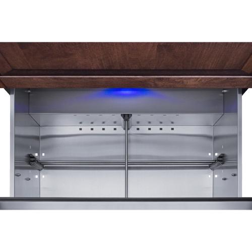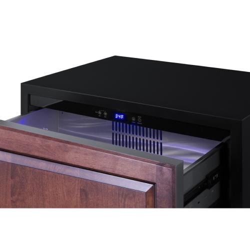 Summit is expanding its popular lineup of built-in undercounter ADA compliant refrigeration with new luxury choices for 30" wide spaces in residential or commercial kitchen indoor and outdoor spaces. Model SPR3032DPNRADA is a 30" wide 2-drawer all-refrigerator sized just under 32" high for an easy fit under lower ADA compliant counters. It comes in a shallow depth just under 24" for added space savings. The drawer fronts are designed to accept overlay panels (sized at 29.5" x 13.78 at a 3/4" thickness) to allow you to create a custom look that best suits your kitchen design. We include a set of handles for optional use, and the drawer fronts are fully finished in stainless steel if you prefer that style. The front-breathing design allows built-in installation, while the fully finished black cabinet also enables freestanding use. The sealed back and right angle plug help to ensure an easy fit. With a generous 5.42 cu.ft. interior capacity, the SPR3032DPNRADA is perfect for keeping a variety of items in easy reach. Each drawer includes a removable divider that lets you create four adjustable sections inside to help organize the interior. The intuitive digital control panel features a wide range from 34 to 65 F, allowing you to adjust your storage conditions for standard food items or beverages better held at warmer temperature. The temperature display can be switched from Fahrenheit to Celsius for added convenience. Both drawers feature LED lighting in a striking blue finish for elegant illumination. Frost-free operation minimizes maintenance and internal fans help to maintain an evenly cooled interior. Additional features include open drawer alarms, a child lock to prevent changes to the controls, an eco mode setting, and a 96 hour sabbath mode to disable certain features for periods of observance. The SPR3032DPNRADA features weatherproof construction for safe installation in outdoor kitchens. It is ETL-S listed to NSF-7 commercial standards and also complies with residential regulations for home use. In addition to this refrigerator, we also manufacture the same style in a 27" fit. Browse Summit's extensive selection of built-in undercounter refrigeration to discover the perfect fit for virtually any kitchen space.