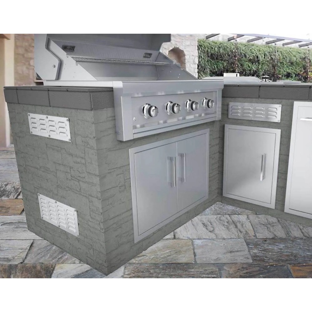 The 15" x 4-1/2" 304 Stainless Steel Vent for Outdoor Kitchen Island is an essential product that ensures high heat escapes and provides proper air circulation, especially when gas appliances are in use. In this product description, we'll explore the importance of having a ventilation system in place, the recommended position of vents depending on the type of gas used, and safety tips to keep in mind when cooking outdoors. Gas or Charcoal Grills hold heat below the counter surface, unlike indoor cooktops where the flame is above the surface. This means that a larger volume of heat can build up within the outdoor kitchen construction, increasing the risk of fire. A proper ventilation system, such as the 15" x 4-1/2" 304 Stainless Steel Vent for Outdoor Kitchen Island, allows high heat to escape and provides proper air circulation, reducing the risk of fire and ensuring safe outdoor cooking.