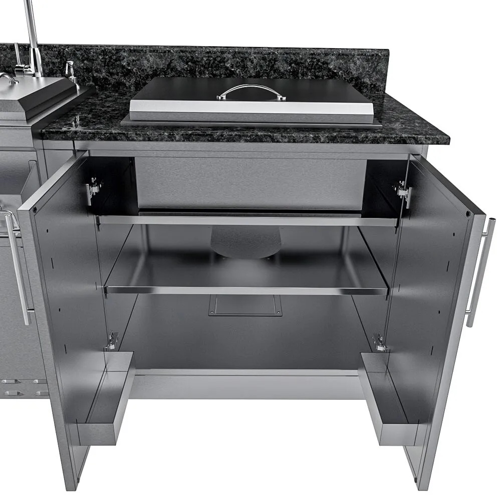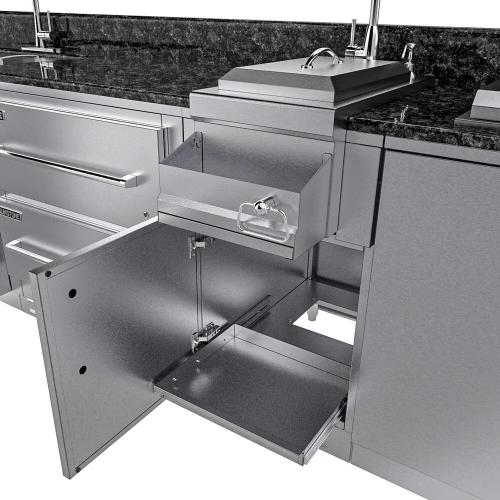 For those who love to entertain, outdoor hosting is more than just a pastime, it is an experience. Whether you're preparing gourmet meals, crafting signature cocktails, or ensuring drinks stay perfectly chilled, your outdoor space should be both functional and stylish. The Galley Clean & Prep Cabinet Island Package is designed to maximize efficiency in your outdoor kitchen. Built with premium 304 stainless steel, this 10ft 8in island provides spacious storage, versatile prep space, and professional-grade appliances, making outdoor entertaining seamless. Whether you're washing fresh ingredients, setting up a cocktail station, or keeping food warm until it is time to serve, this package delivers unparalleled convenience and durability.
