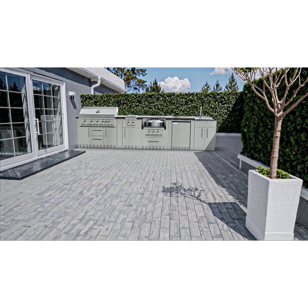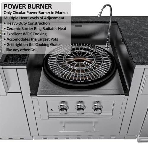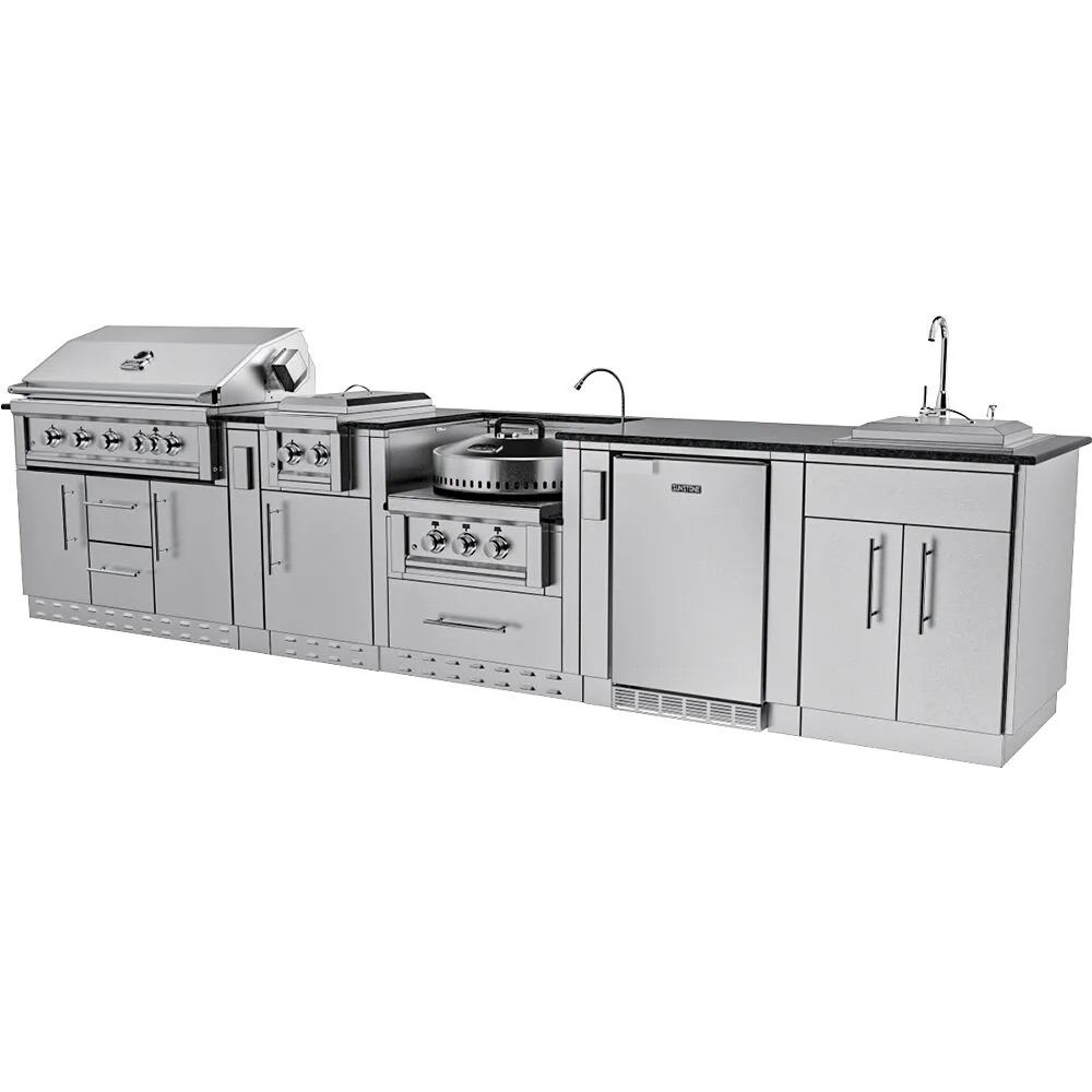 For those who live for outdoor cooking and entertaining, the Hill Country Outdoor Kitchen Island Package is the ultimate combination of power, durability, and convenience. Inspired by the rugged beauty of the Texas Hill Country, this expansive 13'6" outdoor kitchen setup is designed for serious grill masters and home chefs alike. Featuring a high-performance 42" Ruby Series Pro Sear Grill, a powerful 24" Power Cirque All-in-One Burner, a premium refrigerator, and ample storage space, this kitchen delivers an unmatched outdoor cooking experience. Whether you are searing steaks, slow-roasting on the rotisserie, stir-frying, or griddling breakfast, this versatile and customizable outdoor kitchen has everything you need. Built with premium 304 stainless steel, this island is weather-resistant, stylish, and engineered for long-lasting performance.